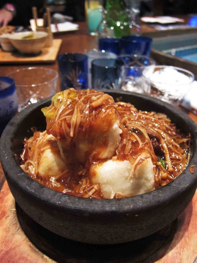 Deep-fried tofu sizzling with a pour of thick mushroom paste in a hot stone bowl, this dish the favourite of the table, the paste held a gooey consistency with the soft tofu. Kingyo creates two styles of deep-fried chicken, a karaage stemming inspiration form “O-sho”, a popular restaurant in Japan for their tasty pepper mix, and one bearing a Diablo chili sauce to dip. My favourite was the unexpected tasty pepper mix, talk about crack… It’s the same satisfaction I get from dipping pineapple into a salt-chili mixture… I am salivating.