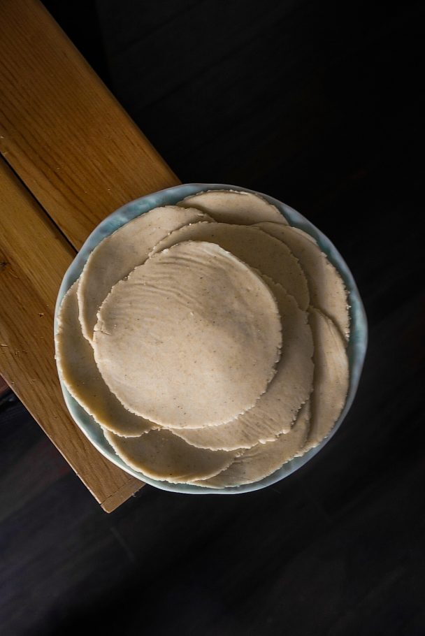 *Note: With the same ratio, all-purpose flour can be an option. But I vote for the cornflour for its subtle flavour addition of corn. The tortilla isn’t my fave way to enjoy a taco, I still prefer the processed soft flour tortillas, but this is a healthier vehicle to get taco meat into my mouth.