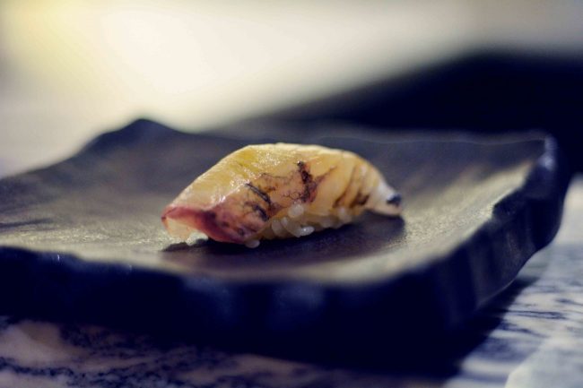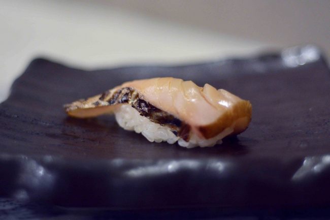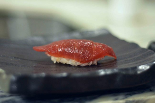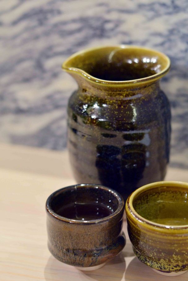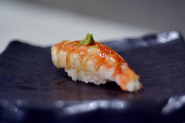 We were seated at the bar seating (reserved seats for a true, personal omakase experience, watching and interacting with the chef) but we found that we were situated in an awkward corner. No matter, less disrupting other diners and more opportunity for pictures, let’s just make sure we make use of that zoom lens. We settled into our seats quickly and went over the three omakase options: (A) $80, (B) $120, and (C) $240, we were set with the option B and were good to go.