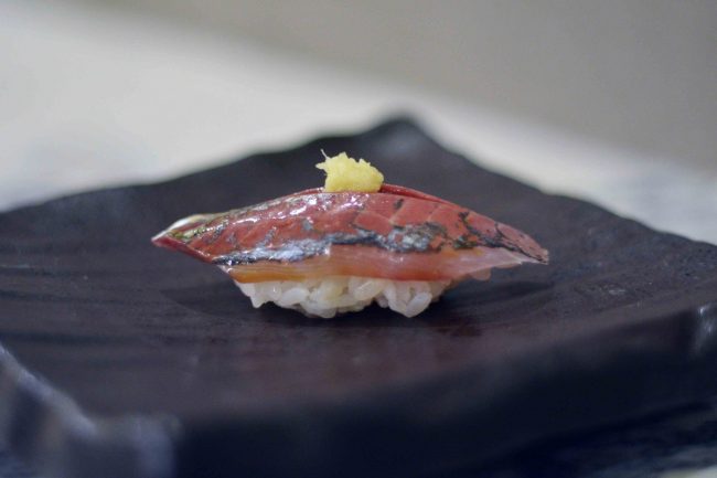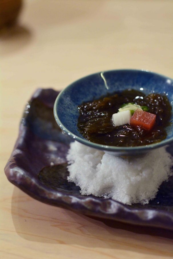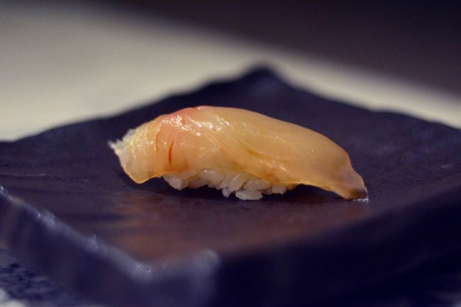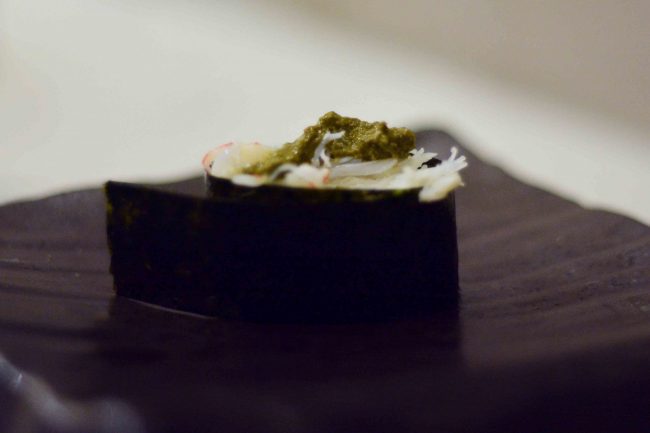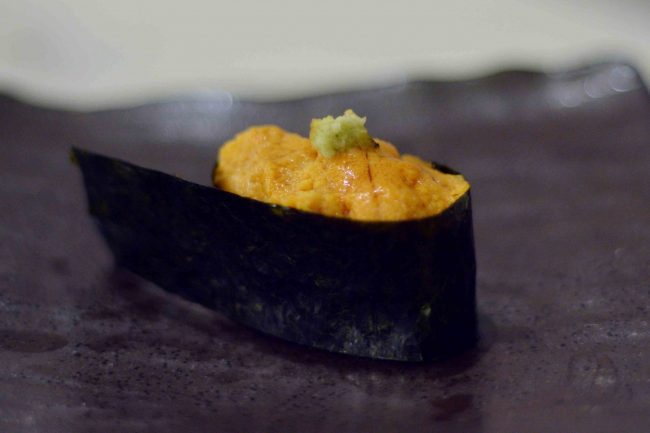 Sixth course: Hand roll!? I expected a futomaki here but that was skipped! The hand roll was very good and you can tell that the nori has been toasted prior as it really falls apart in your mouth. But… WHERE’S MY FUTOMAKI?